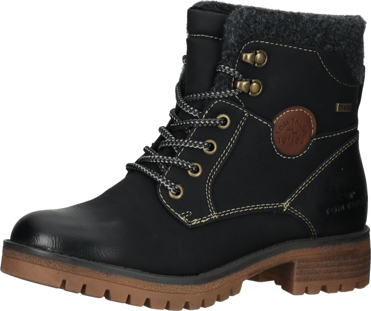 Mit diesem robusten Damen Schnürboot in Schwarz von Tom Tailor liegst du in der kühlen Jahreszeit absolut im Trend.Das weiche Obermaterial aus authentisch genarbtem Kunstleder und die stylische Schnürung ziehen alle Blicke auf sich.Abgerundet wird das sportliche Design durch den gewebten Schaftrand und dem warmen und weichen Innenfutter.Zudem sorgt die Tex Membran für trockene Füße auch bei Nässe und der seitliche Reißverschluss ermöglicht leichtes An- und Ausziehen.Ein toller Winterstiefel für den Alltag.