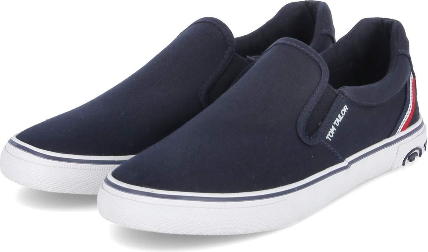 Dieser sportliche Herren Slipper von Tom Tailor passt perfekt zu jedem Casual Outfit.Das Textil Obermaterial in Blau mit Details in Rot und Weiß ist an der Seite mit der Marken Aufschrift verziert. +