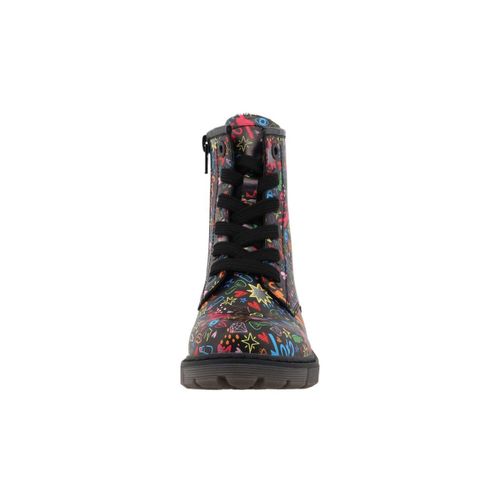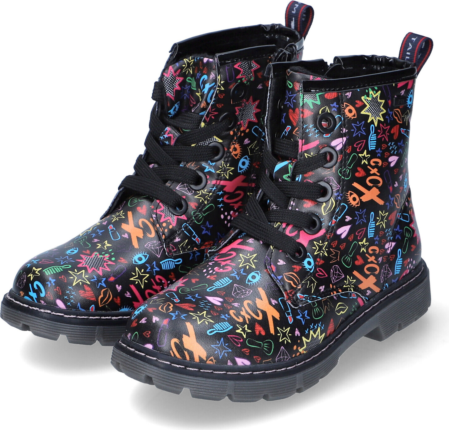 Dieser coole Stiefel für Kinder von Tom Tailor überzeugt im angesagten Look.Gefertigt aus Kunstleder in Schwarz begeistert er jedes Mädchen durch seinen tollen Allover Print mit Herzen, Sternchen und vielem mehr. +