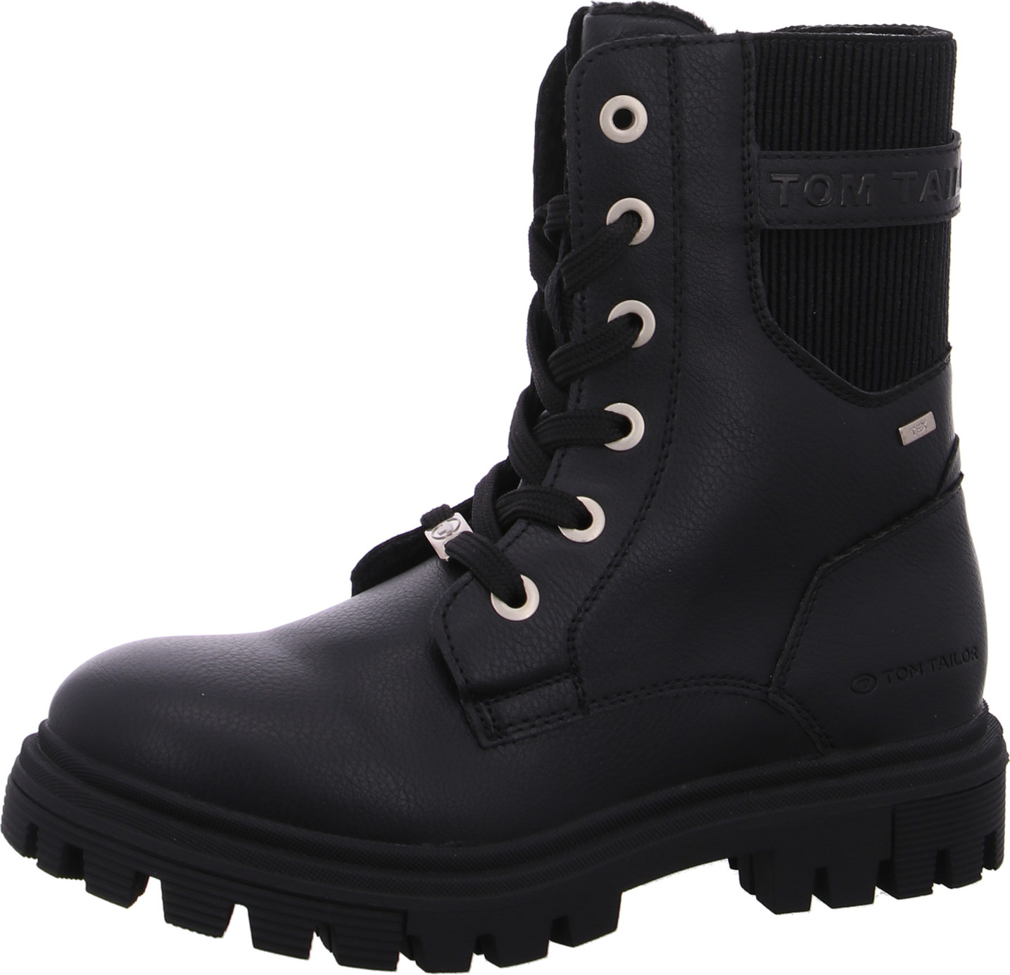 Ein toller Kinder Stiefel für Mädchen ist dieses Modell von Tom Tailor.Gefertigt auseinem Mix aus Kunstleder und Textil in Schwarz ist der Schaft mit einem Textil Einsatz versehen. +