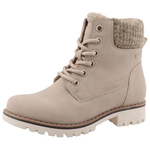 Tom Tailor Winterboots, Blockabsatz, Schnürboots, Schnürstiefelette mit Innenreißverschluss (beige)