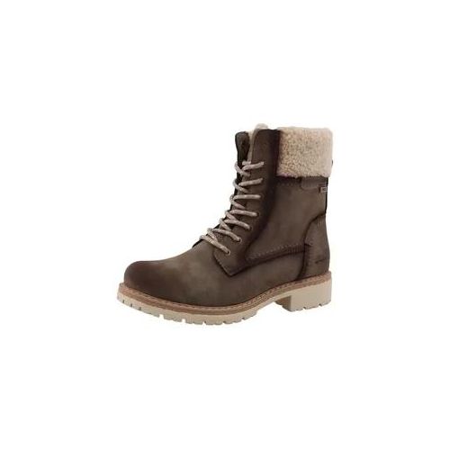 Im Inneren sind sie mit Futter versehen, das zusätzlich wärmt. Dank dem Blockabsatz und der klassischen runden Schuhspitze sind die Winterboots besonders komfortabel.