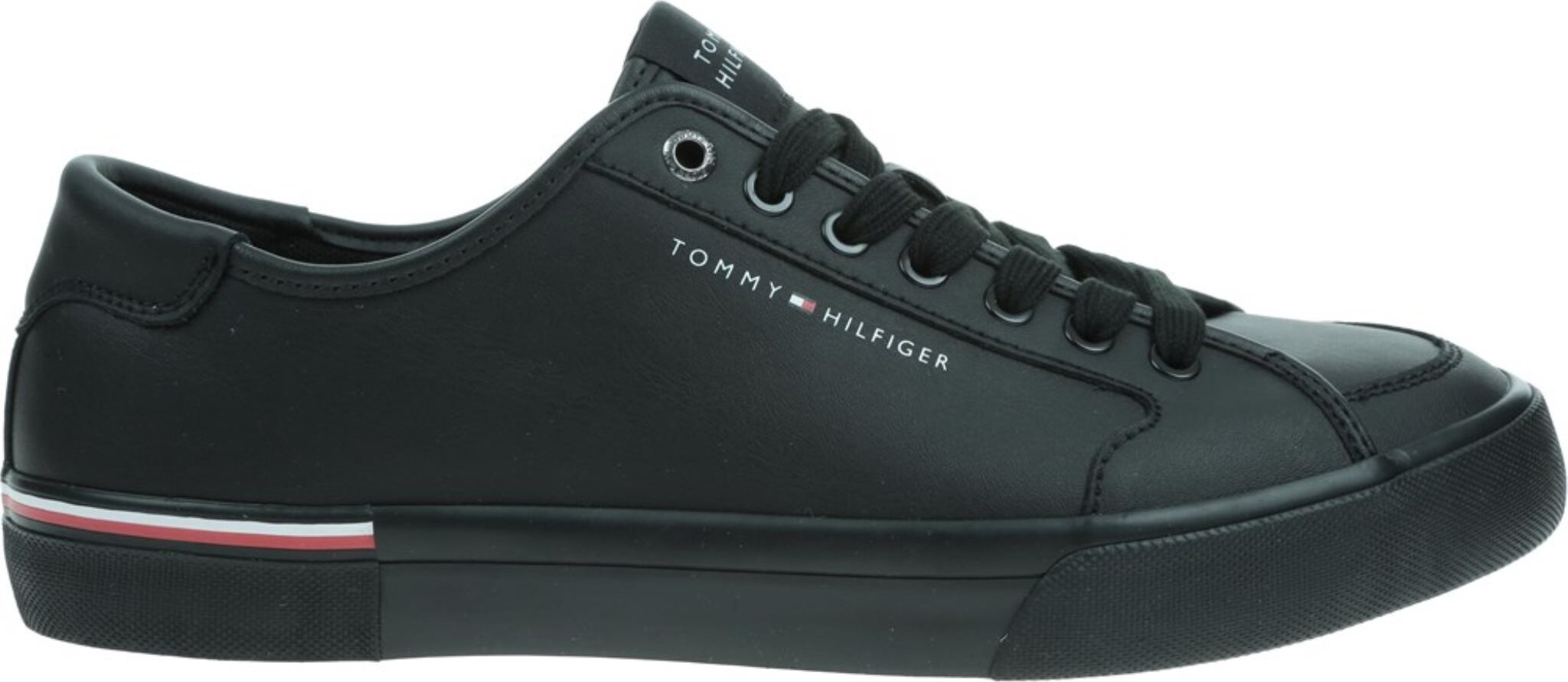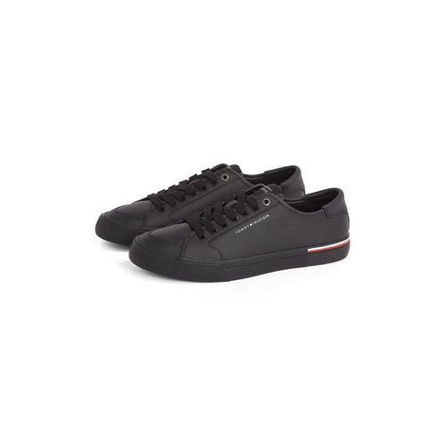 Tommy Hilfiger CORE CORPORATE VULC LEATHER Sneaker, Freizeitschuh, Halbschuh, Schnürer mit Logoschriftzug (schwarz)
