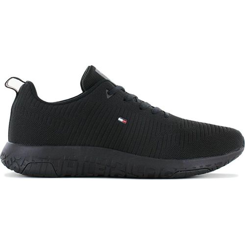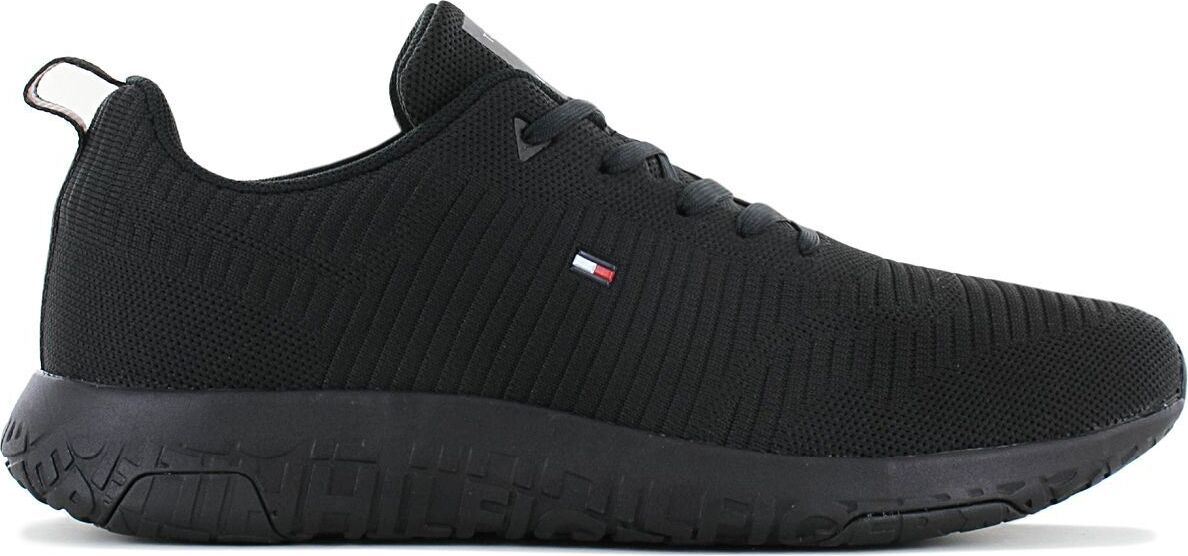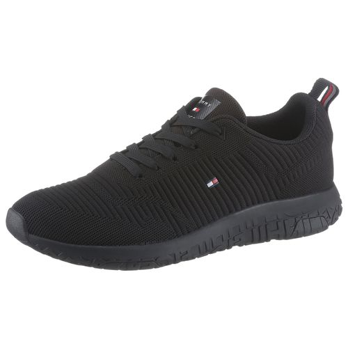 Tommy Hilfiger CORPORATE KNIT RIB RUNNER Sneaker, Freizeitschuh, Halbschuh, Schnürschuh mit seitlicher Logoflagge (schwarz)