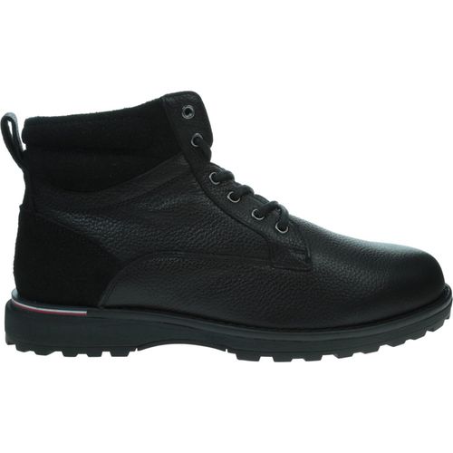 Tommy Hilfiger CORPORATE W LTH LACE BOOT Schnürboots, Schnürstiefelette mit Ziernähten und Anziehlasche (schwarz)