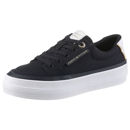 Tommy Hilfiger ESSENTIAL VULC TEXTILE SNEAKER Plateausneaker, Freizeitschuh, Halbschuh, Schnürschuh mit goldfarbenen Details (blau)