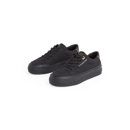 Tommy Hilfiger ESSENTIAL VULC TEXTILE SNEAKER Plateausneaker, Freizeitschuh, Halbschuh, Schnürschuh mit goldfarbenen Details (schwarz)