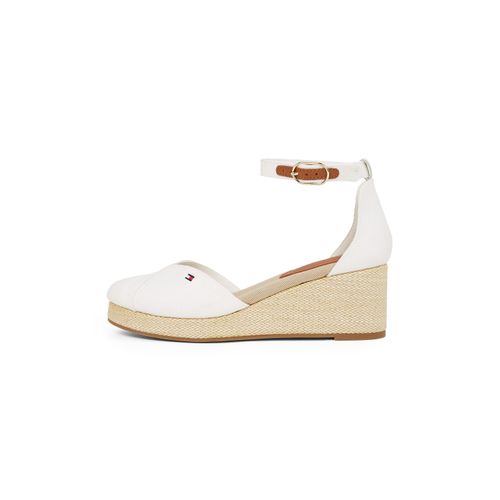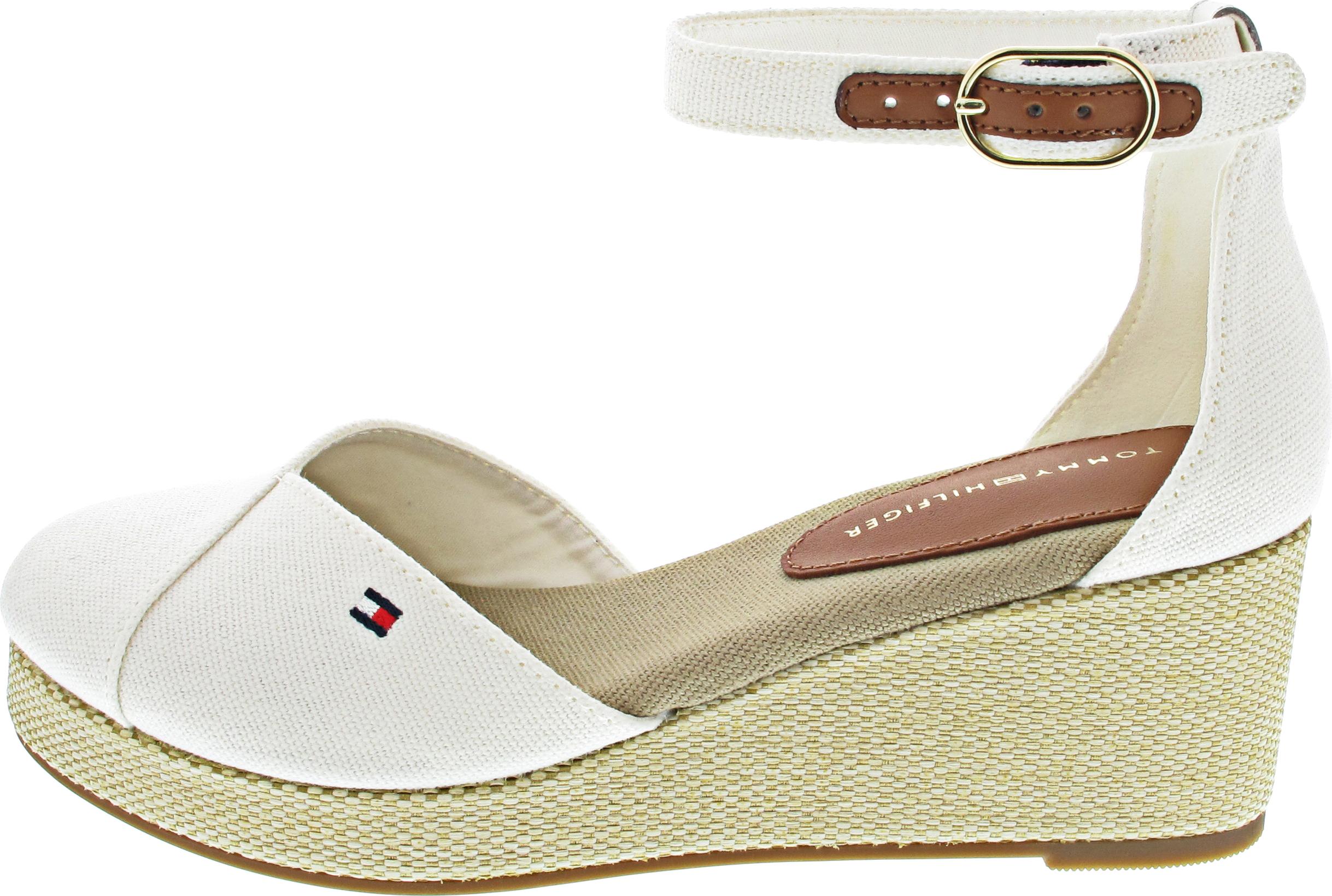 Tommy Hilfiger FLAG CLOSED TOE MID WEDGE ESPAD Keilsandalette, Riemchensandale, Sommerschuh mit verstellbarer Schnalle (braun/weiß)