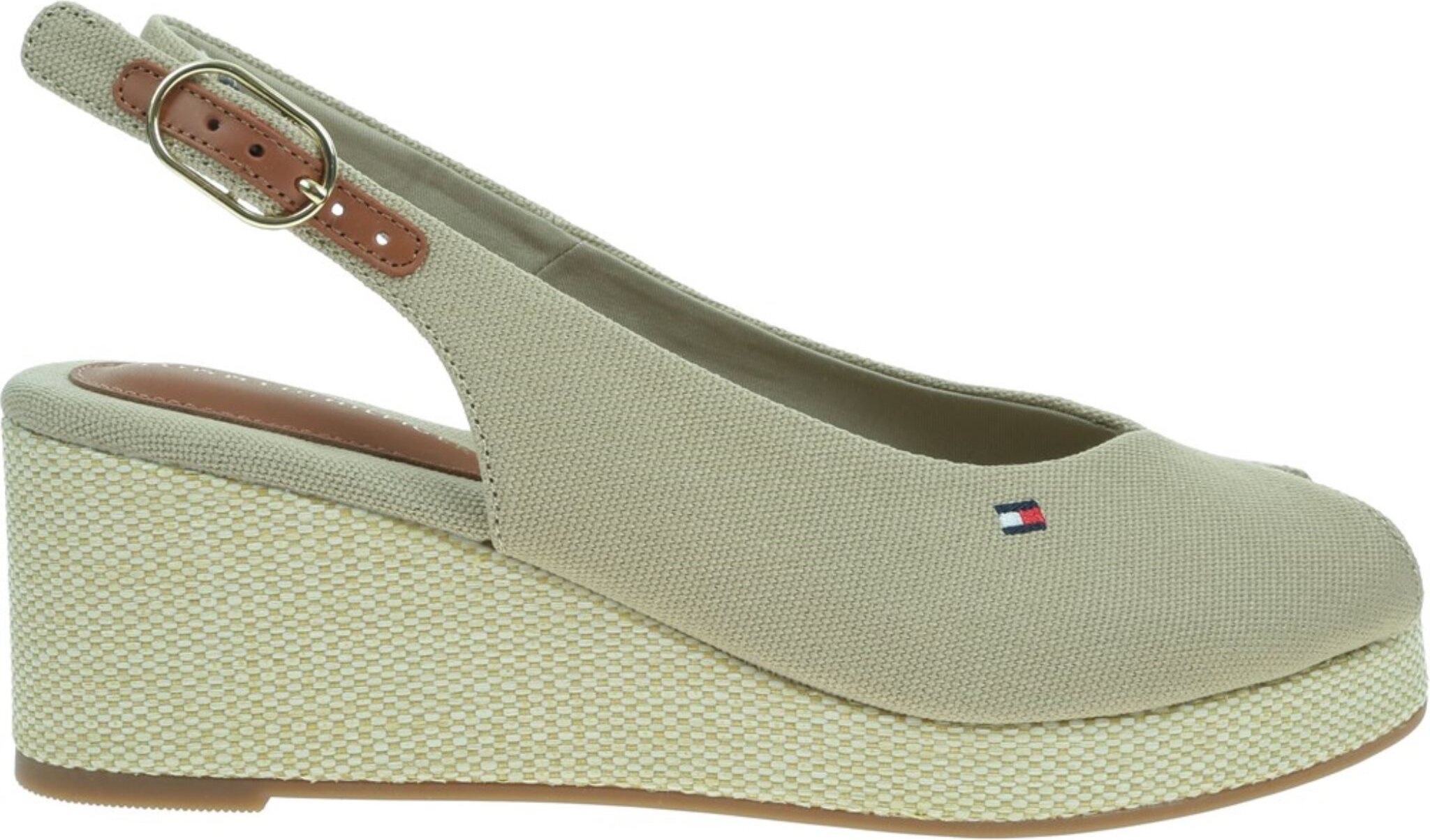 Tommy Hilfiger FLAG MID WEDGE ESPAD SLINGBACK Keilsandalette, Plateau, Sommerschuh, Riemchensandale mit verstellbarer Schnalle (beige)