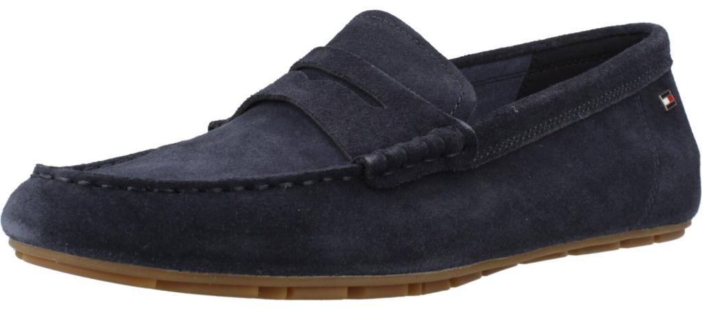 Tommy Hilfiger FLAG SOFT SUEDE DRIVER LOAFER Slipper, Schlupfschuh, Bequemschuh, Mokassin, Flats mit modischen Zierriegel (blau)