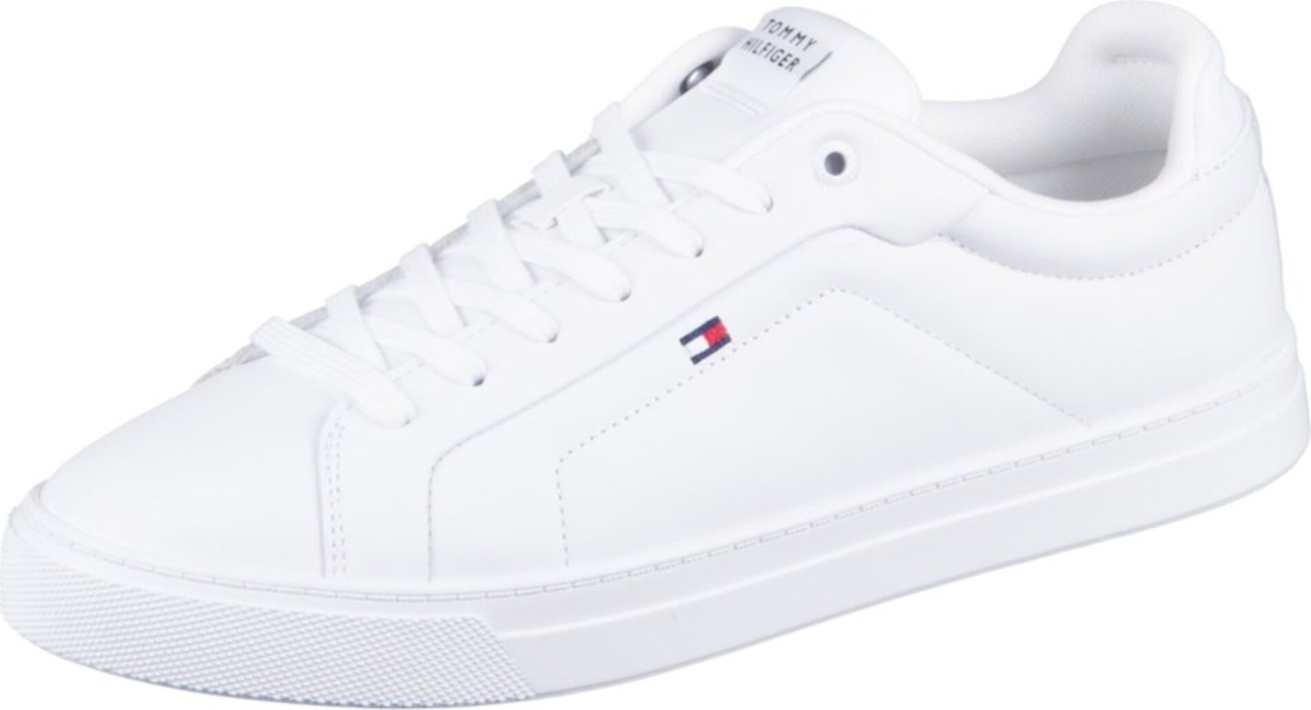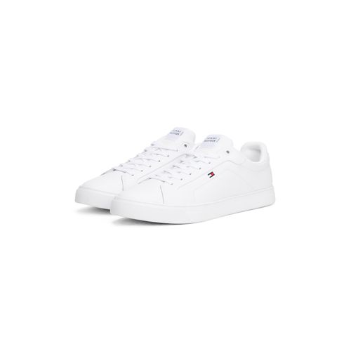 Tommy Hilfiger ICON COURT LTH FLAG ESS Sneaker, Freizeitschuh, Halbschuh, Schnürschuh mit kleiner Logoflagge (weiß)