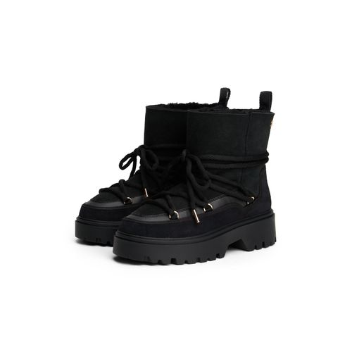 Tommy Hilfiger REAL SHEARLING LACEUP SNOWBOOT Winterboots, Blockabsatz, Plateau, Schnürboots mit aufgesetzter Schnürung (schwarz)