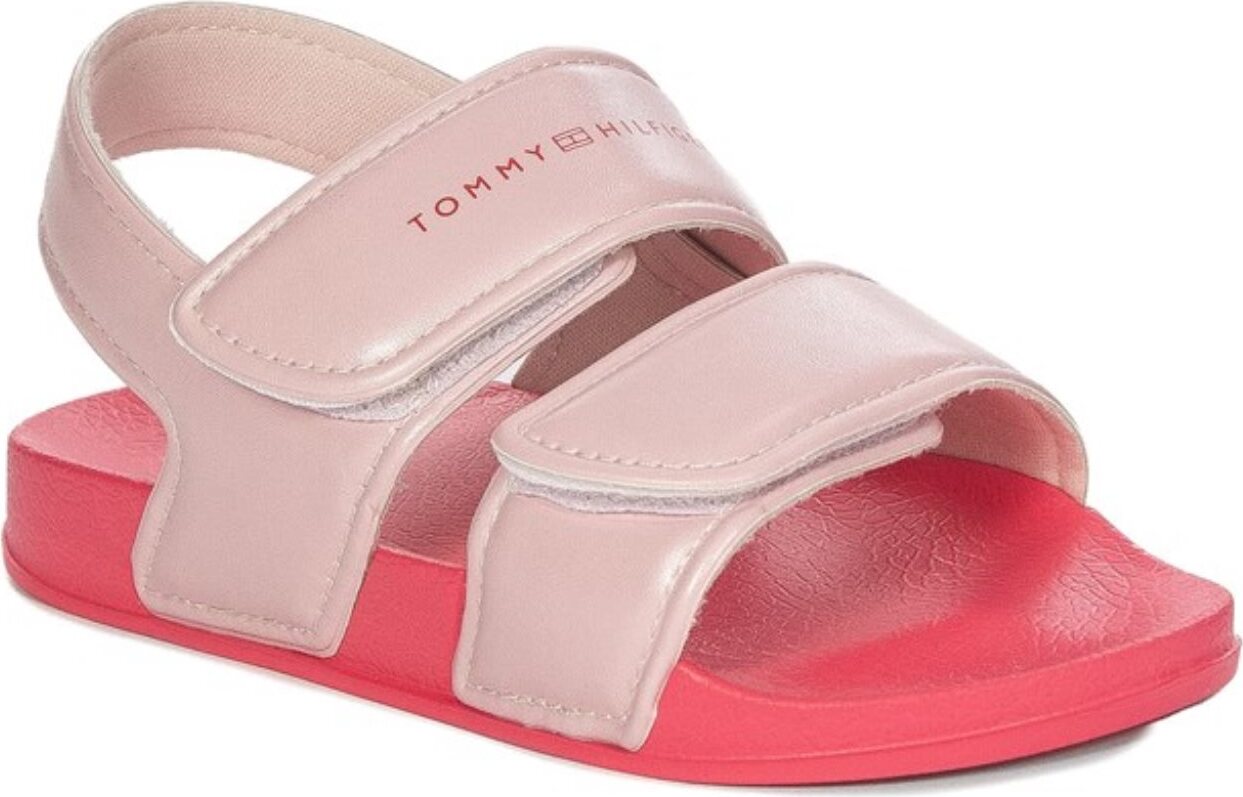 Tommy Hilfiger Sandale, Badeschuh, Pool Slides mit Klettverschlüssen (rosa)