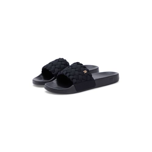 Tommy Hilfiger TH BRAIDED POOL SLIDE Pantolette Plateau, Sommerschuh, Strandschuh mit geflochtener Bandage (schwarz)