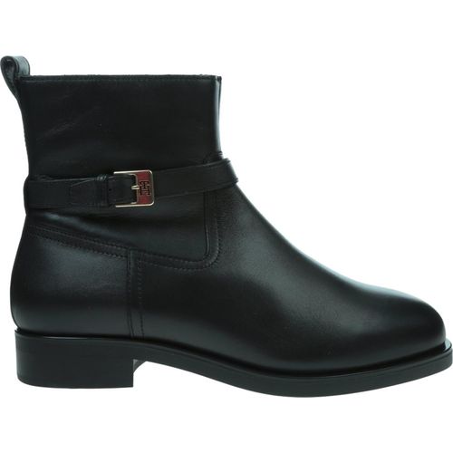 Tommy Hilfiger TH BUCKLE RIDING LEATHER BOOTIE Stiefelette, Blockabsatz, Ankleboots, Businessschuh mit Zierschnalle (schwarz)