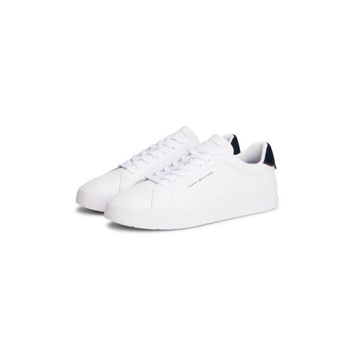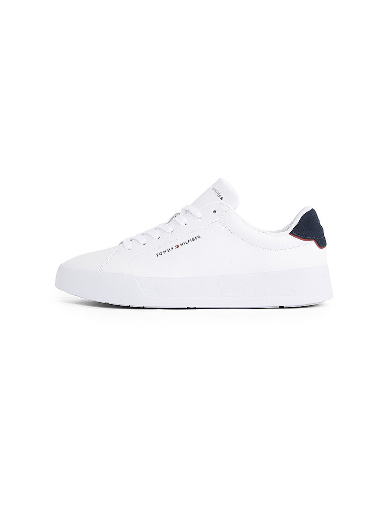 Tommy Hilfiger TH COURT LTH DETAIL ESS Sneaker, Freizeitschuh, Halbschuh, Schnürschuh mit seitlichem Logoschriftzug (blau/weiß)