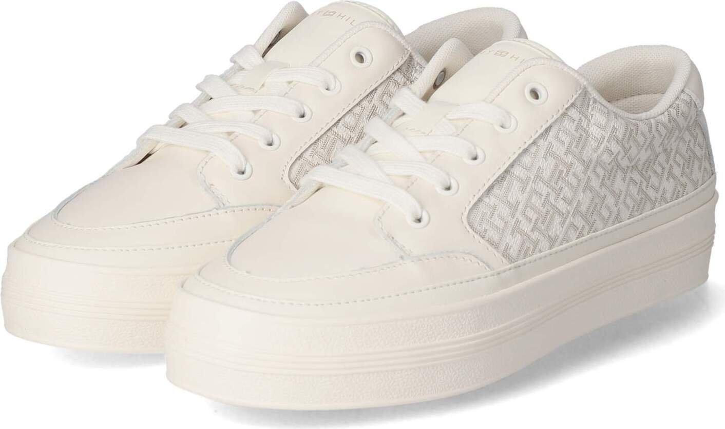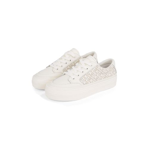 Tommy Hilfiger VULC LEATHER SNEAKER MONOGRAM Plateausneaker, Freizeitschuh, Halbschuh, Schnürschuh mit Allover-Logoprint (ivory kombiniert)