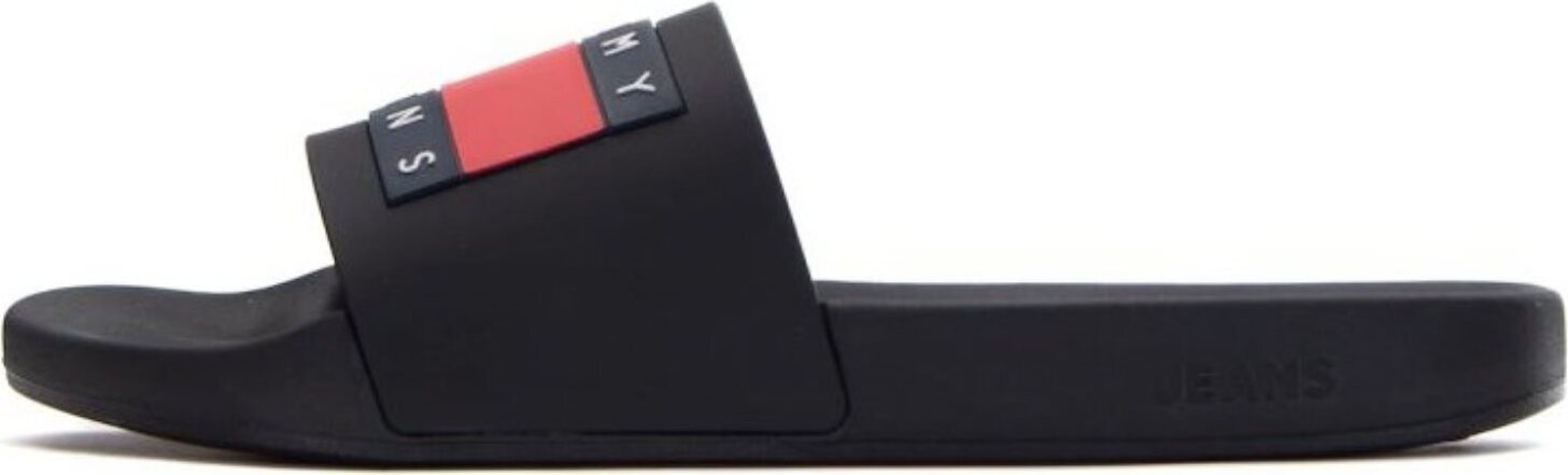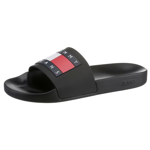 Tommy Jeans POOL SLIDE ESS Badepantolette, Sommerschuh, Poolslides, Schlappen, mit plakativer Logoflag (schwarz)