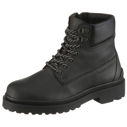 Tommy Jeans TJM LACE UP BOOT LEATHER Schnürboots, Schnürstiefelette mit weich abgepolstertem Schaftrand (schwarz)