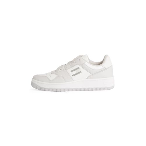 Tommy Jeans TJM RETRO BASKET CUPSOLE TUMBLE Sneaker, Freizeitschuh, Halbschuh, Schnürschuh mit gepolstertem Schaftrand (grau/weiß)