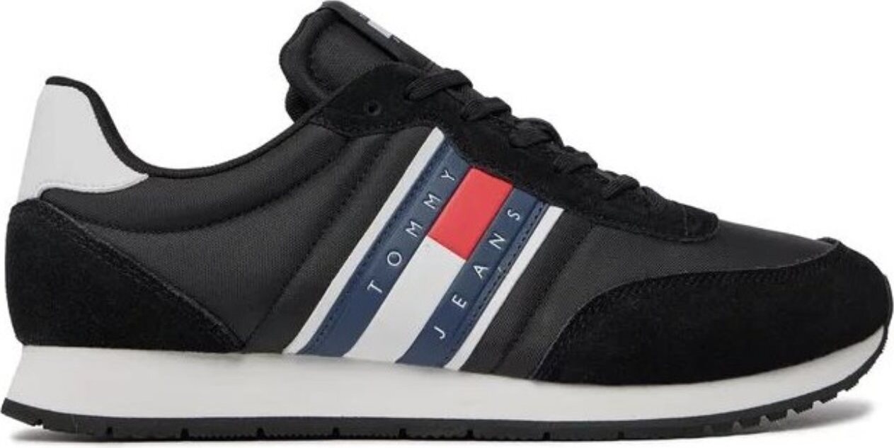 Tommy Jeans TJM RUNNER CASUAL ESS Sneaker, Freizeitschuh, Halbschuh, Schnürschuh mit seitlicher Logoflagge (schwarz/weiß)
