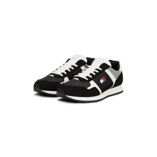 Tommy Jeans TJM RUNNER CASUAL Sneaker, Schnürschuh, Halbschuh, Freizeitschuh mit seitliche Logoflag (schwarz/weiß/grau)