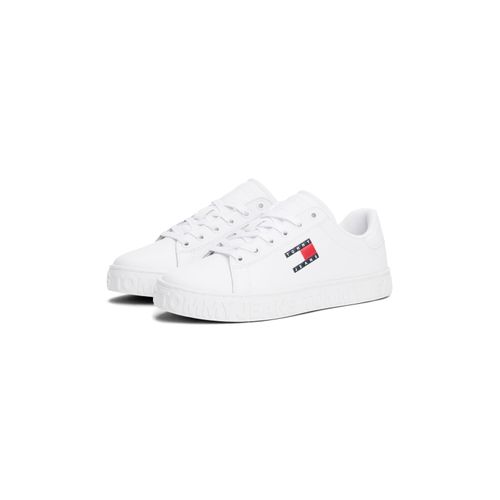 Tommy Jeans TJW LOGO OUTSOLE SNEAKER ESS Plateausneaker, Freizeitschuh, Halbschuh, Schnürschuh mit seitlicher Logoflagge (weiß)
