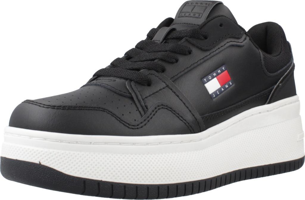 Tommy Jeans TJW RETRO BASKET FLATFORM Keilsneaker, Plateau, Freizeitschuh, Schnürschuh, mit Lochmuster, im Basket-Look (schwarz)