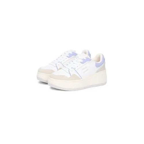 Tommy Jeans TJW RETRO BASKET FLATFORM Plateausneaker, Freizeitschuh, Halbschuh, Schnürschuh mit Kontrastbesätzen (beige/lila/weiß)