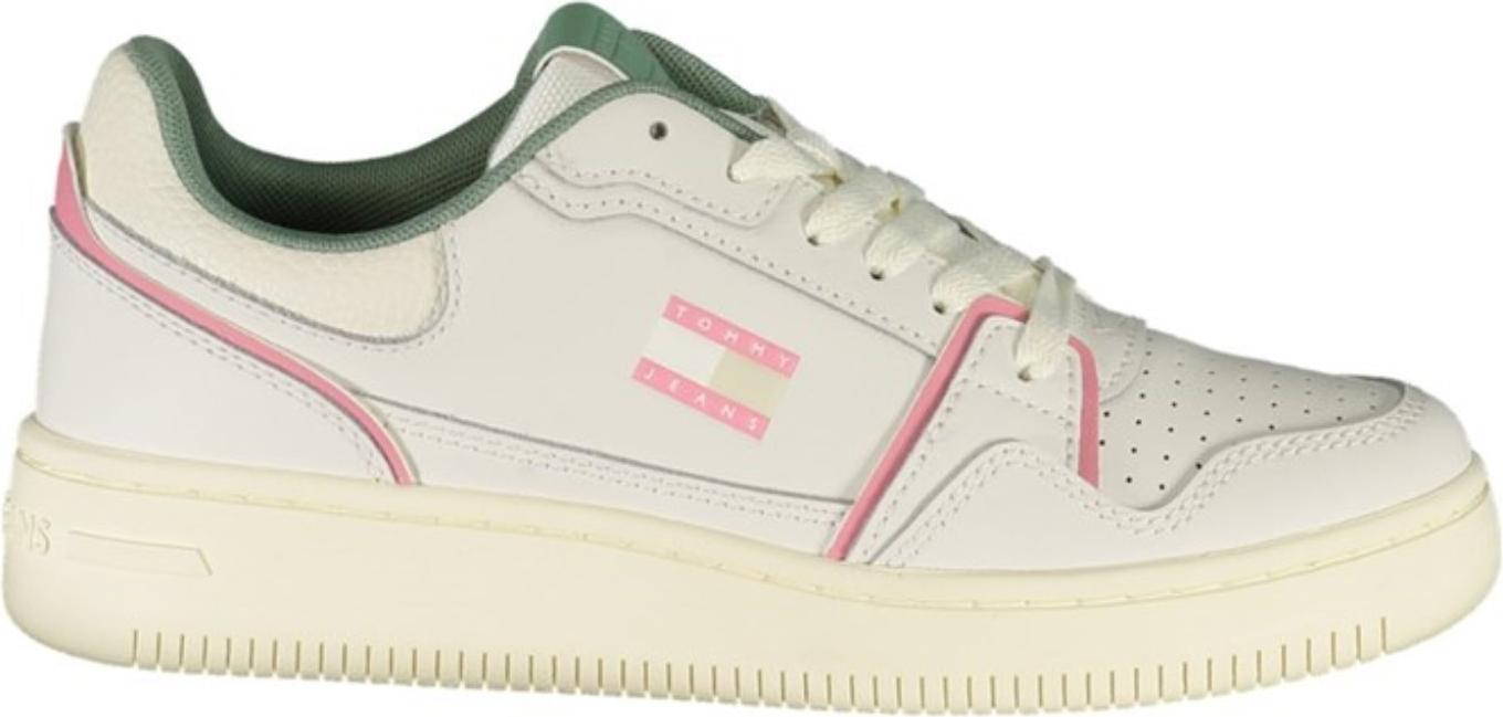 Tommy Jeans TJW RETRO BASKET SNEAKER Plateausneaker, Freizeitschuh, Halbschuh, Schnürschuh mit geprägter Logoflagge (rosa/weiß)