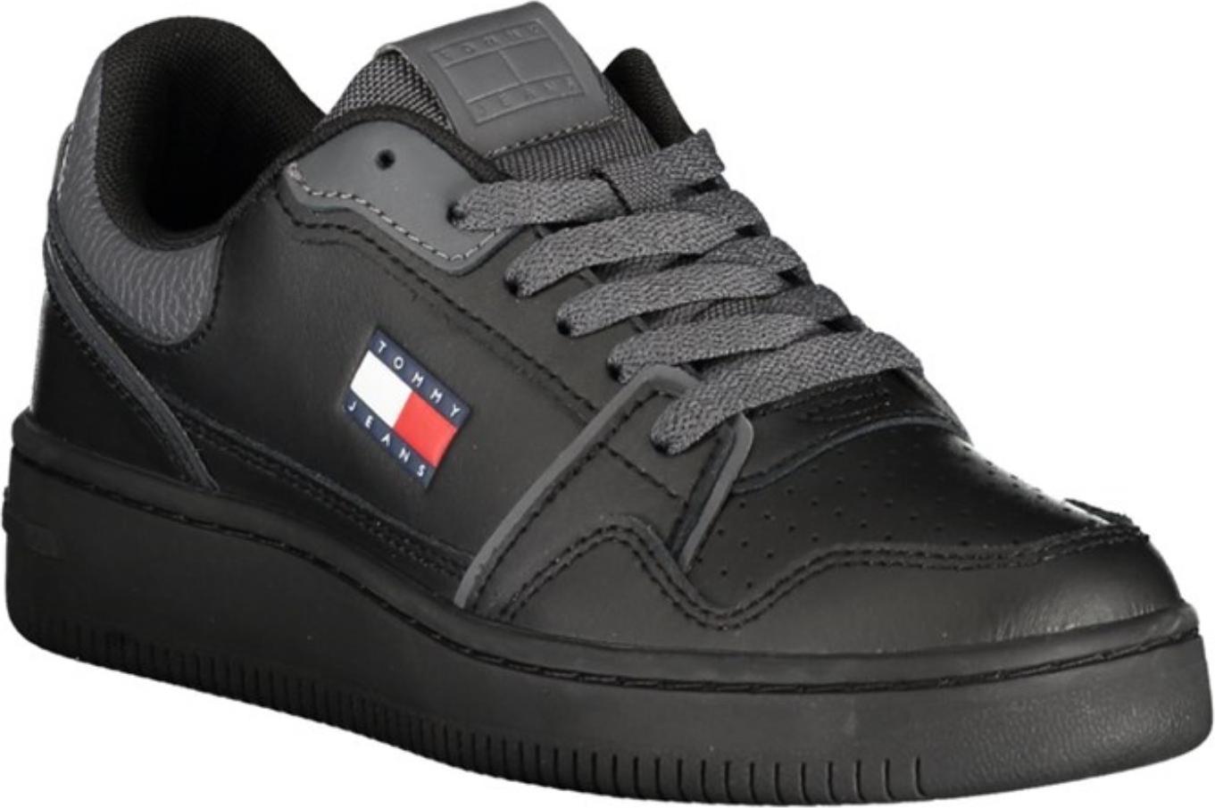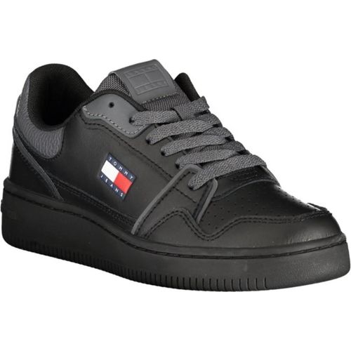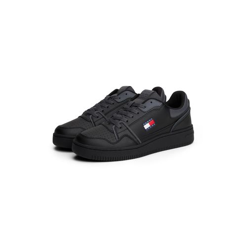 Tommy Jeans TJW RETRO BASKET SNEAKER Plateausneaker, Freizeitschuh, Halbschuh, Schnürschuh mit geprägter Logoflagge (schwarz)