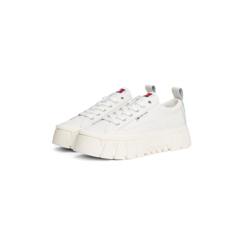 Tommy Jeans TJW VULC FLATFORM LEATHER Plateausneaker, Freizeitschuh, Halbschuh, Schnürschuh mit dezenten Ziernähten (weiß)