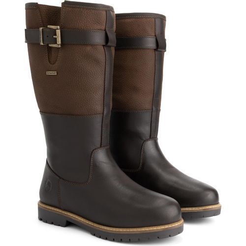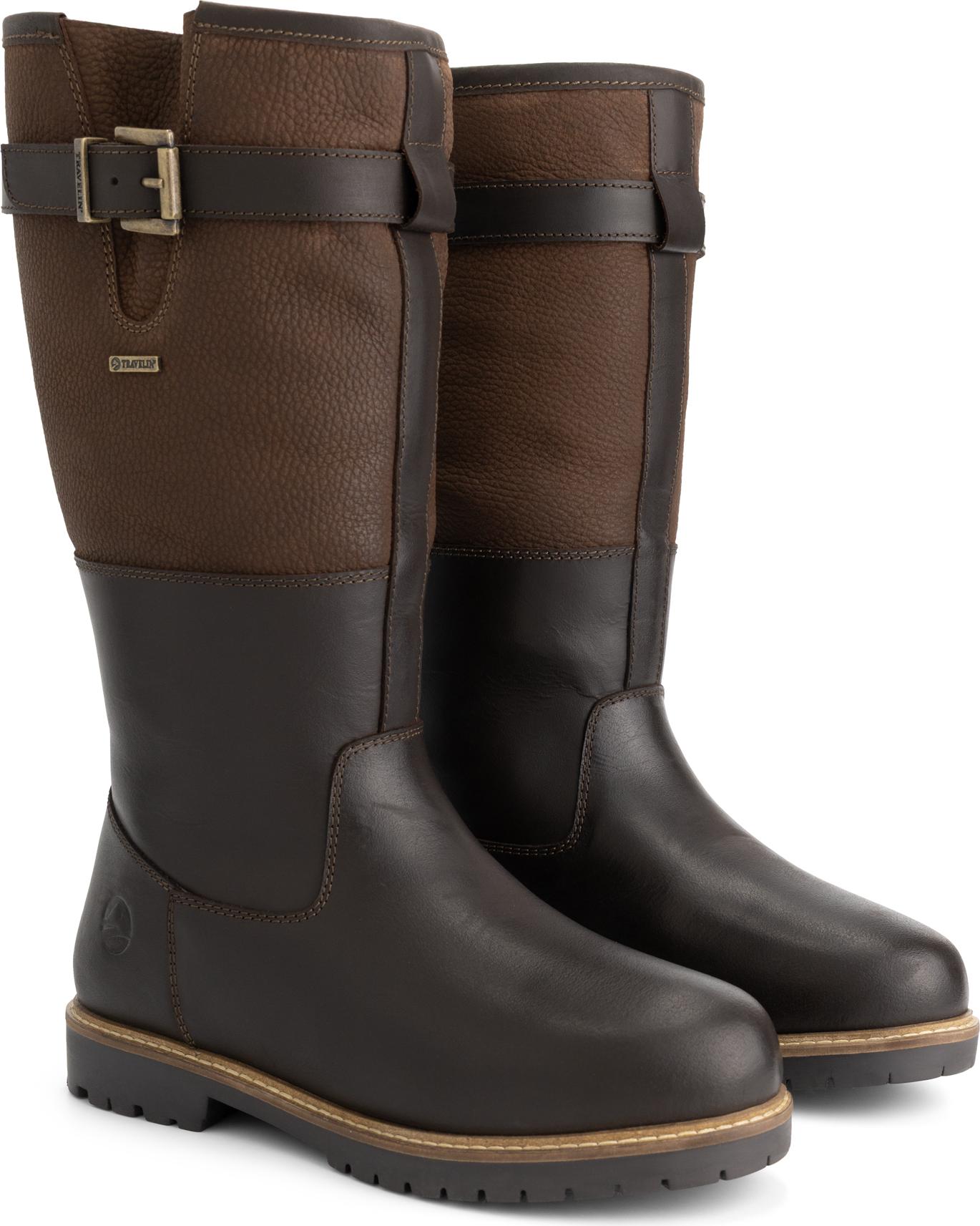 Dank der robusten, profilierten Gummisohle bietet der Grimdalen maximalen Halt auf rutschigem oder schlammigem Untergrund. Der verstellbare Schaftumfang, die Anziehlaschen an der Innenseite und der Lederbesatz an der Schaftinnenseite machen das An- und Ausziehen einfach und bequem.