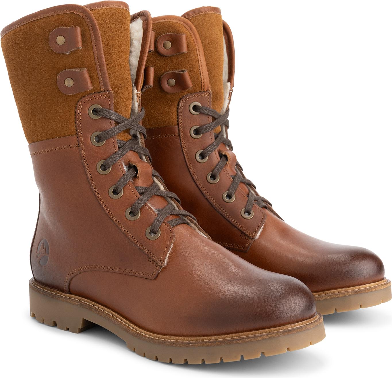 Dank der flachen, gewachsten Schnürsenkel, der Metallösen und der Anziehschlaufe aus Leder lässt sich der Stiefel leicht anziehen und passt sich perfekt an Ihren Fuß an. Für einen besonders winterlichen Look können Sie den Schaft aus Wildleder umschlagen, um das weiche Wollfutter freizulegen.