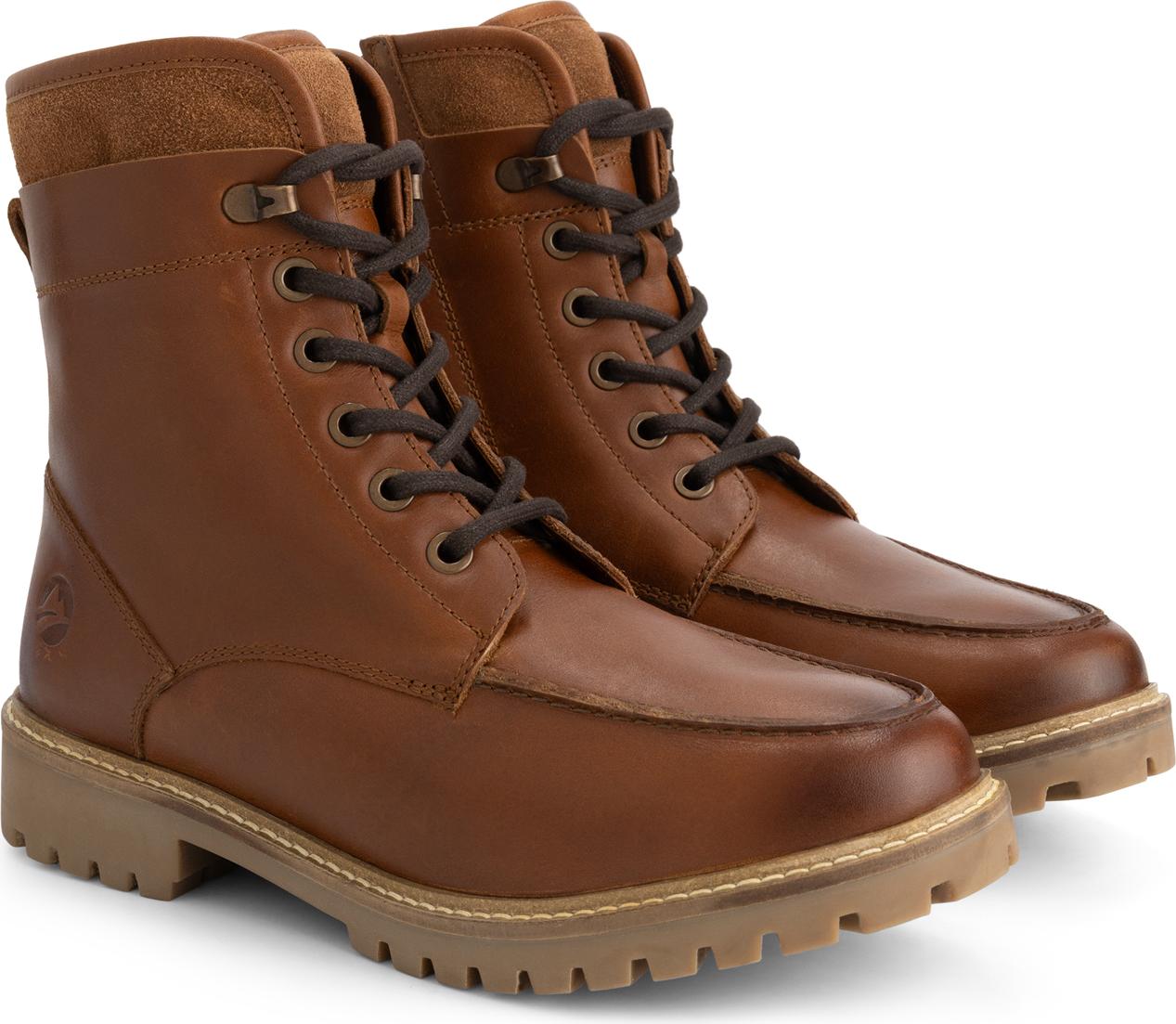 Dieser knöchelhohe Schnürstiefel ist aus hochwertigem, 2,0 mm dickem, wasserdichtem Vollnarbenleder gefertigt. Dank der Kombination aus wasserdichtem, innen wasserabweisend behandeltem Leder und verschweißten Nähten bietet der Langstrand zusätzlichen Schutz vor Nässe.