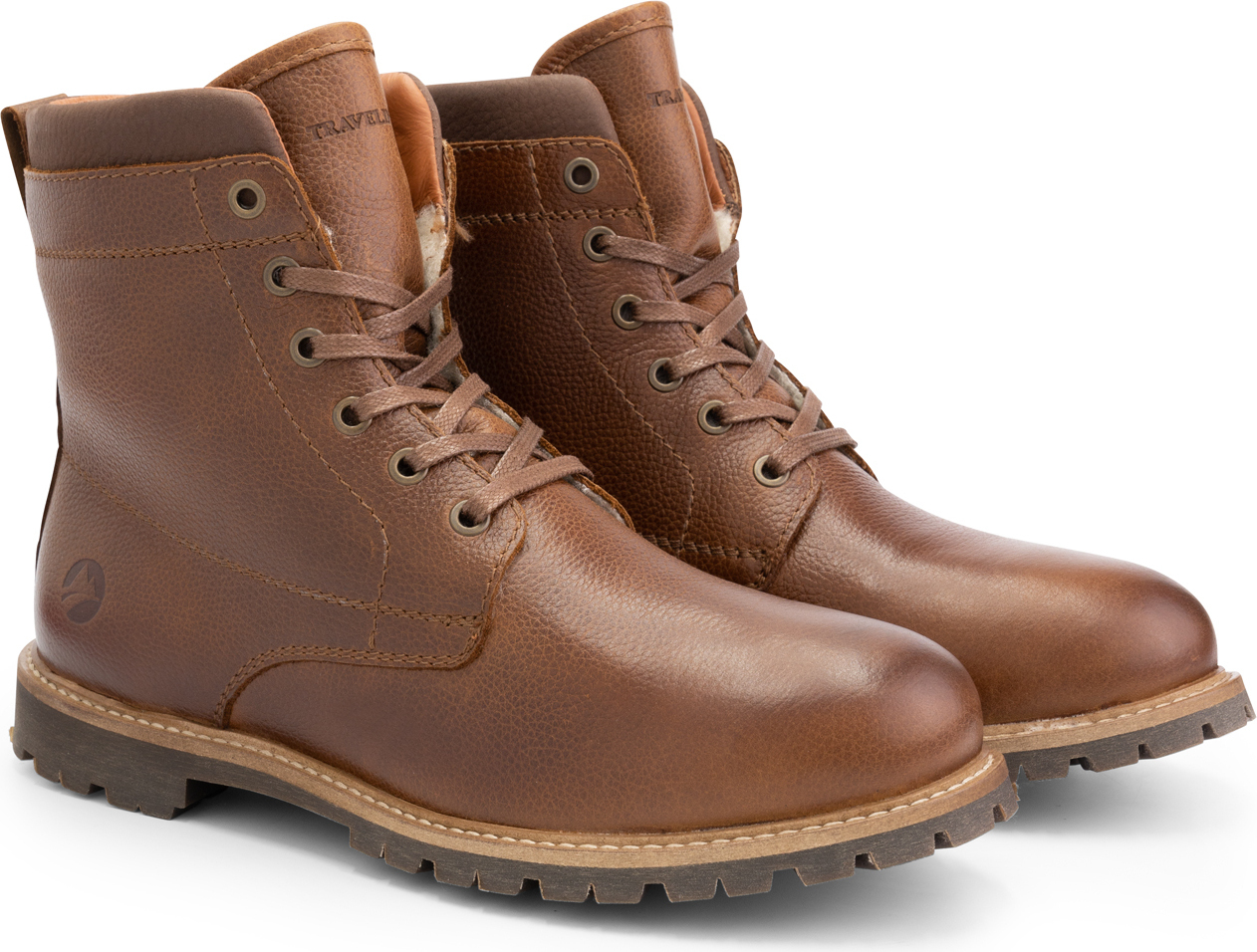 Der Lederstiefel ist vollständig mit Wolle gefüttert und hat, wie alle Travelin', Stiefel, eine herausnehmbare Einlegesohle mit einer Deckschicht aus Wolle. Die Vibram-Profilsohle sorgt für zusätzlichen Grip.