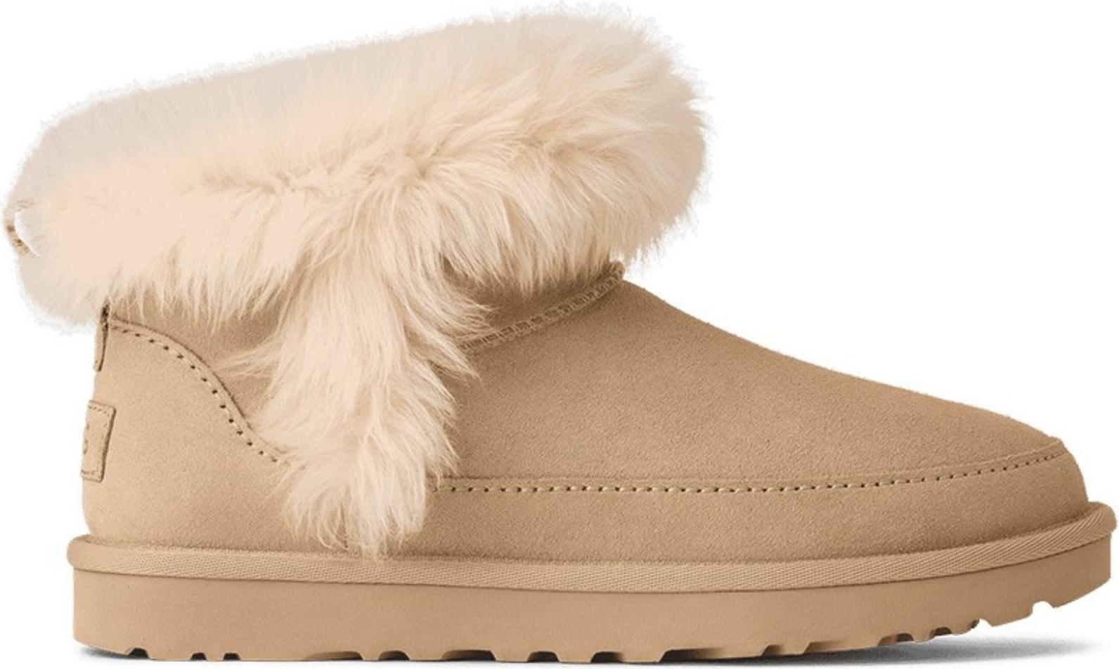 Ugg Classic Ultra Mini Chalet Winterboots Ankleboots, Schlupfboots mit modischer Schaffell Verzierung (beige)