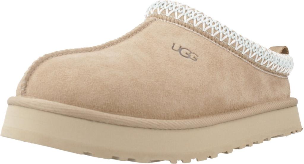 Ugg K TAZZ Pantoffel, Plateau Clog, Mule, Hausschuh mit Zierborte (beige)