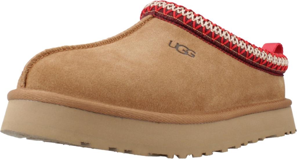 Ugg K TAZZ Pantoffel, Plateau Clog, Mule, Hausschuh mit Zierborte (CHESTNUT)