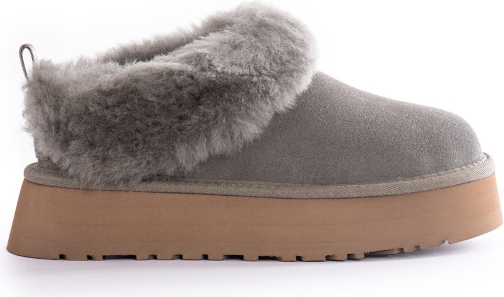 Innerhalb des Schuhs sorgt das Lammfell für warme Füße. Dank dem Plateauabsatz wird zusätzliche Höhe geschaffen, ohne den Komfort zu beeinträchtigen.