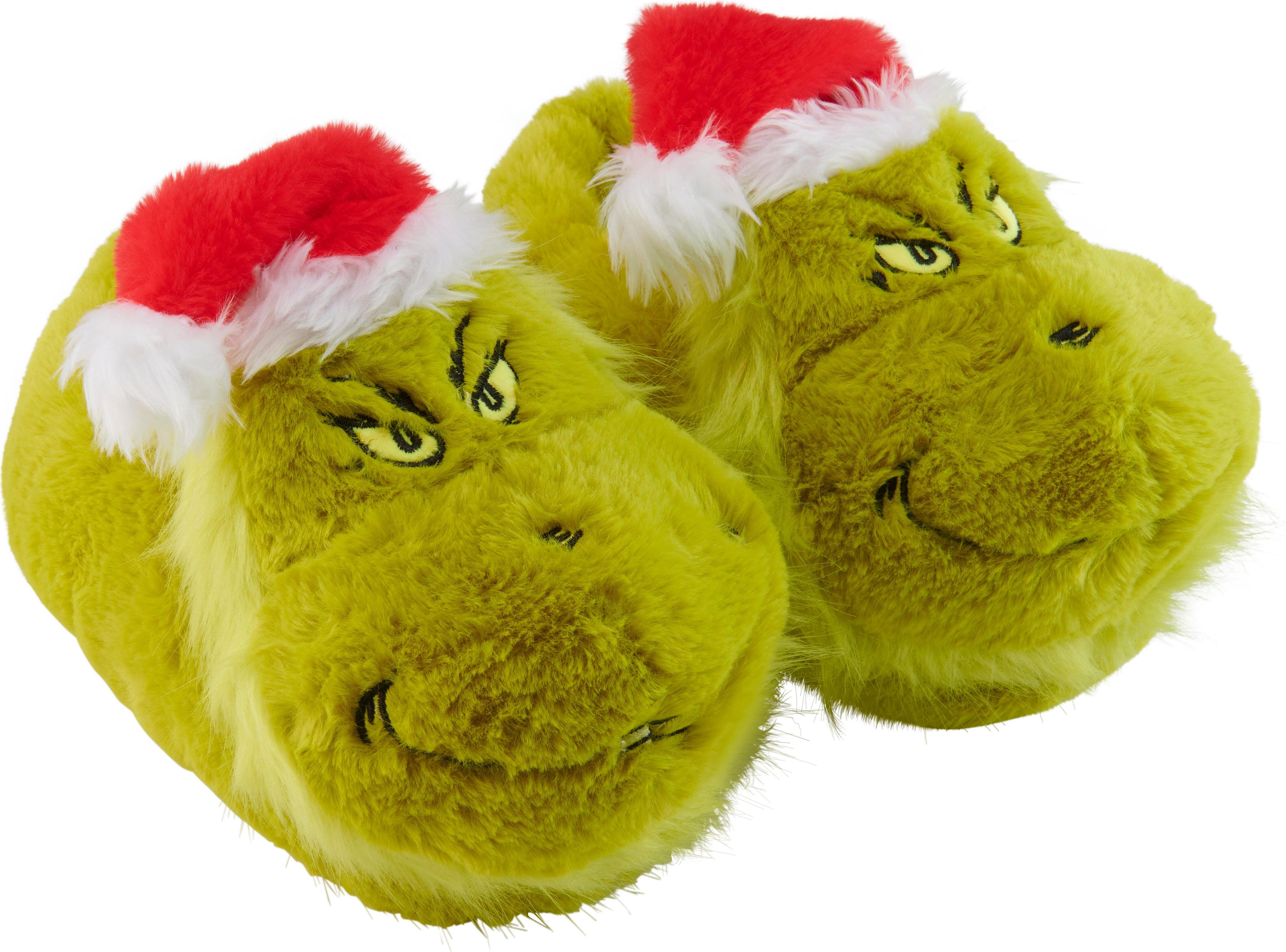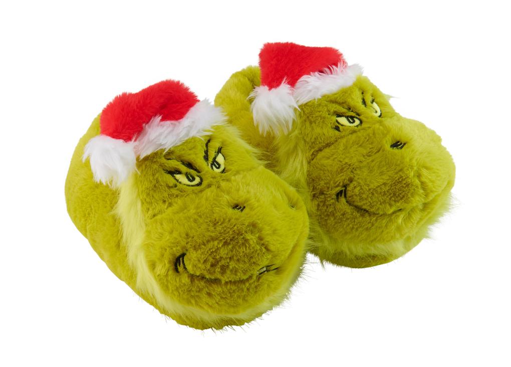 The Grinch 3D Hausschuhe - Plüsch Slipper mit Weihnachtsmütze Pantoffeln Puschen Schlappen Unisex GrünHausschuhe sind spießig und langweilig?Aber nicht diese muckeligen Slipper zum Hineinschlüpfen mit dem coolen The Grinch Design!Schließlich sind gemütliche Pantoffeln das i-Tüpfelchen für die bequeme Homewear-Gaderobe, besonders an kalten Tagen!Dank kuschelig weichem Material sind diese Hausschuhe so gemütlich, dass du sie nie mehr ausziehen möchtest! Leider wird dies aber immer einmal wieder der Fall sein, aber umso besser ist es, dass man in die Hausschuhe dank der bequemen Form schnell hineinschlüpfen kann!Die Anti-Rutsch Noppen auf den Sohlen der Pantoletten geben zusätzlichen Halt auf Fliesenböden oder anderen glatten Untergründen, sodass man mit den Slippern auch mal schnell durch die Wohnung tanzen kann, wenn einen die gute Laune vor lauter Wohlfühlfaktor überkommt! Diese Slipper sind gerade im Winter die passenden Begleiter für die Füße eines jeden Fans!Produktdetails: - Material: 100% PolyesterPflegehinweise: - Handwäsche- NICHT bleichen- NICHT trocknergeeignet- NICHT chemisch reinigen