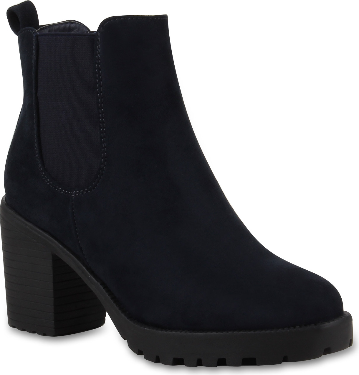 VAN HILL 76870 Chelseaboots Damen Stiefeletten Chelsea Boots Profilsohle Blockabsatz (blau/grau)