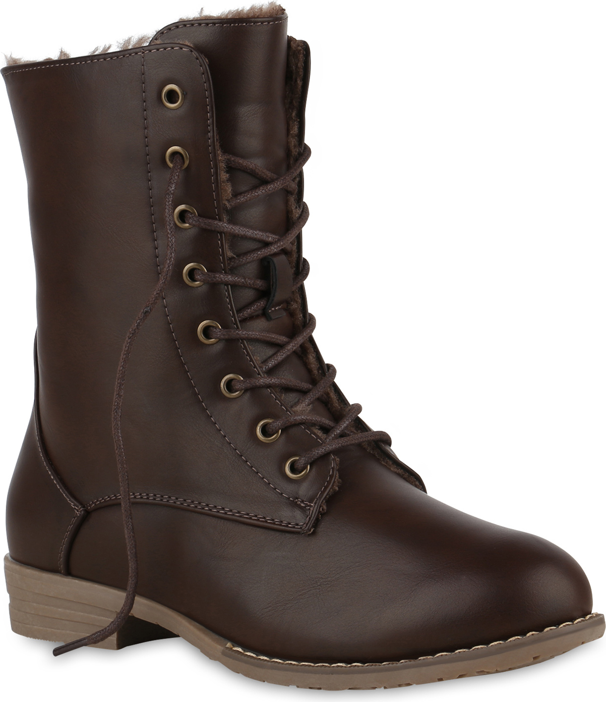VAN HILL 78490 Schnürstiefelette Damen Schnürstiefeletten Warm Gefütterte Stiefeletten Winter Boots (braun)