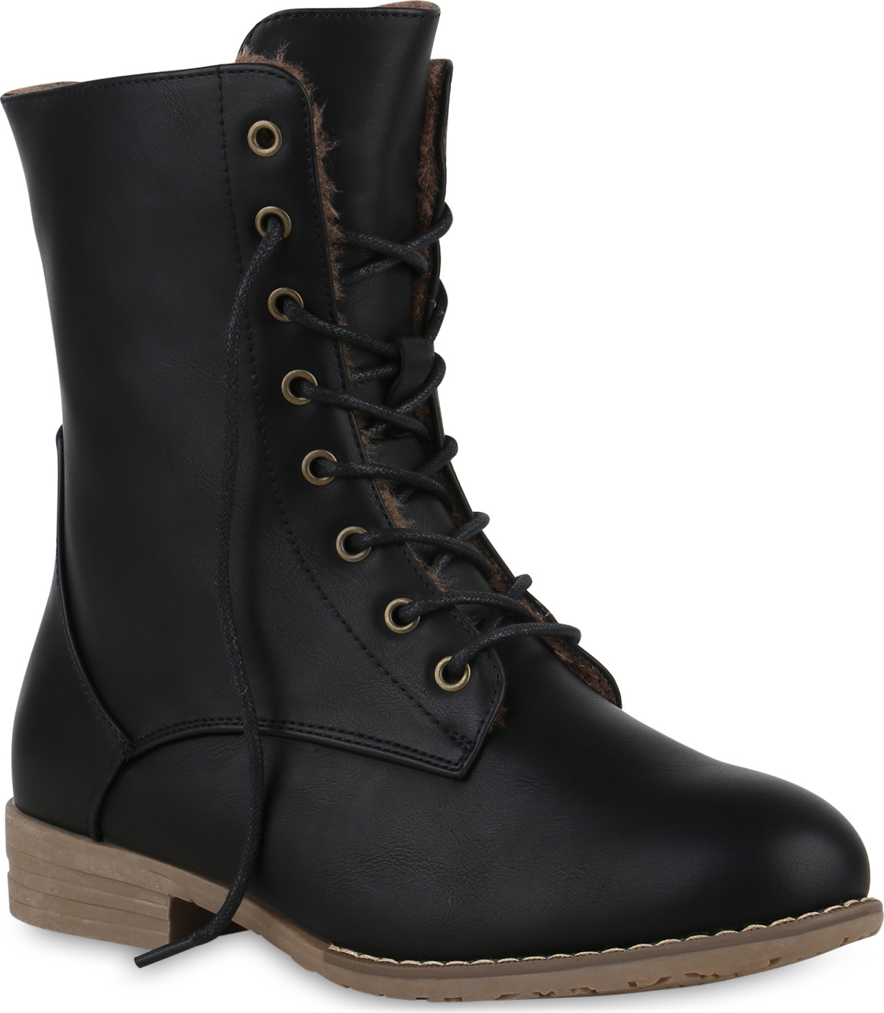 VAN HILL 78490 Schnürstiefelette Damen Schnürstiefeletten Warm Gefütterte Stiefeletten Winter Boots (schwarz)