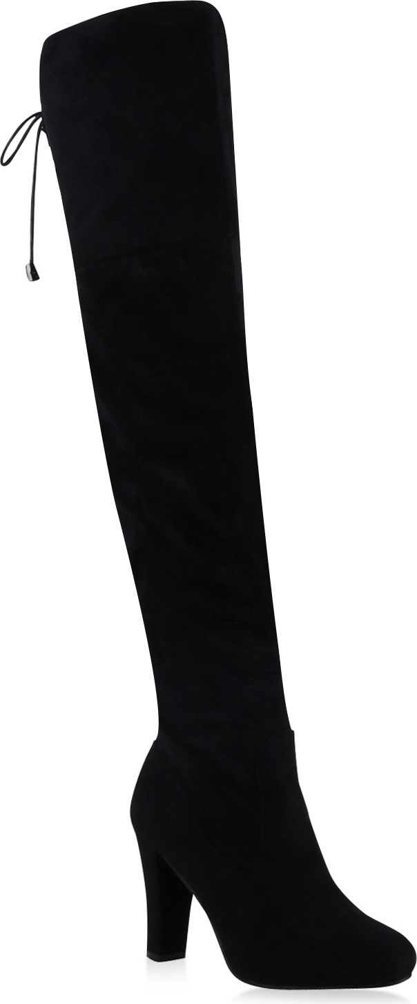VAN HILL 811288 Overkneestiefel Modische Damen Stiefel Overknees Schleifen Perlen Absatz (schwarz)