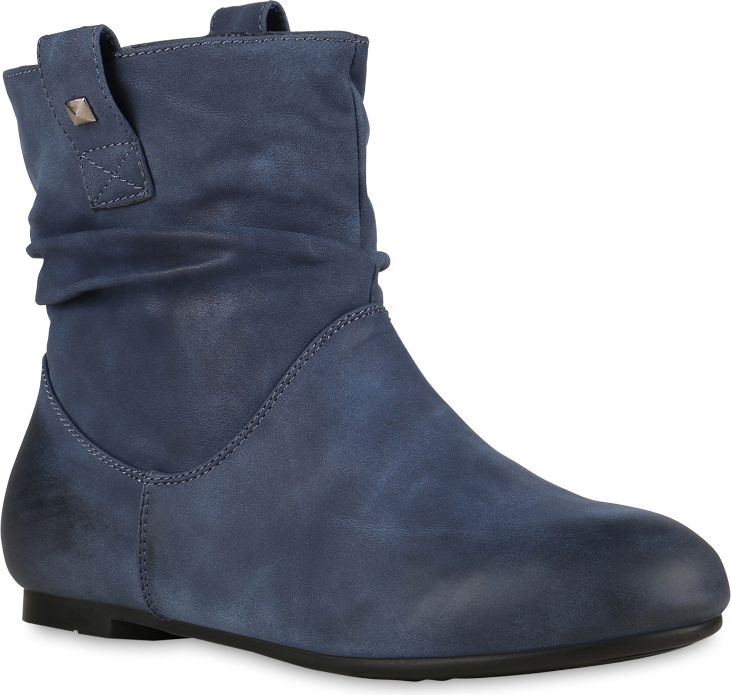 VAN HILL 811678 Schlupfboots Gefütterte Damen Schlupfstiefel Nieten Stiefeletten Leder-Optik (blau)