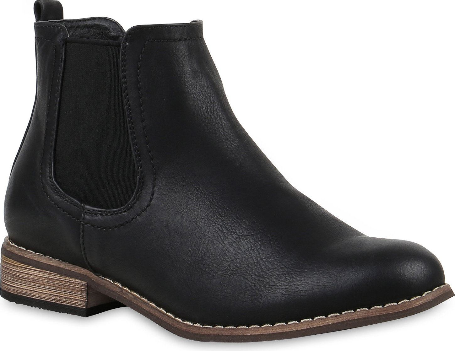 VAN HILL 811822 Chelseaboots Gefütterte Damen Chelsea Boots Leder-Optik Stiefeletten (schwarz)