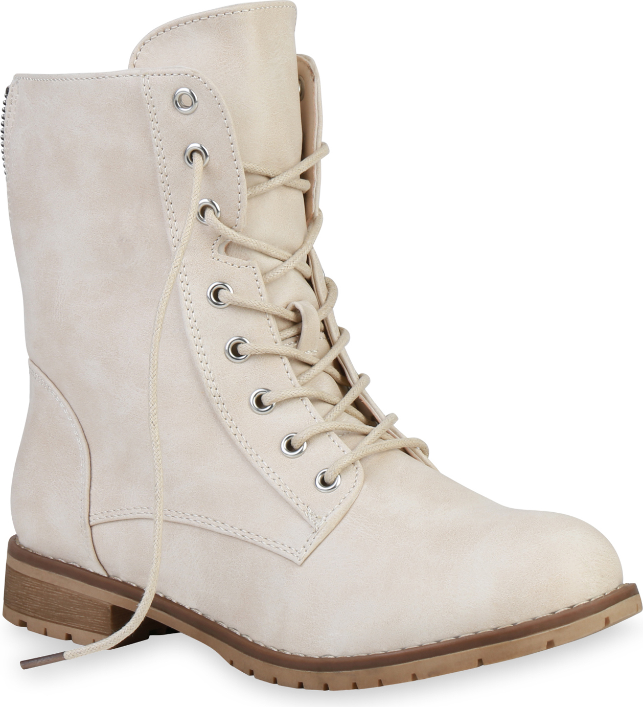 VAN HILL 812022 Schnürstiefelette Damen Schnürstiefeletten Profil Sohle Stiefeletten Leder-Optik (beige)