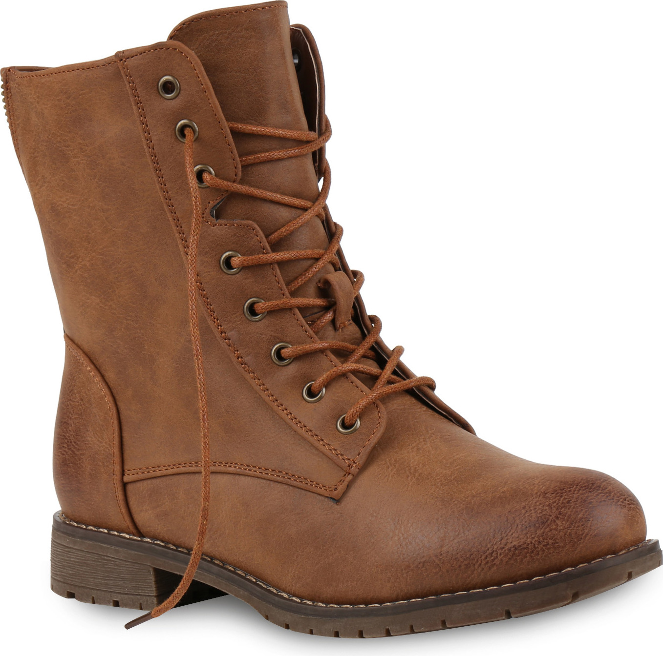 VAN HILL 812022 Schnürstiefelette Damen Schnürstiefeletten Profil Sohle Stiefeletten Leder-Optik (braun)