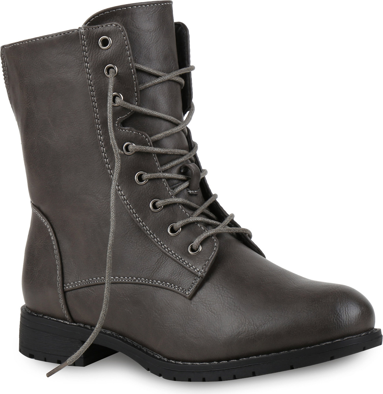 VAN HILL 812022 Schnürstiefelette Damen Schnürstiefeletten Profil Sohle Stiefeletten Leder-Optik (grau)